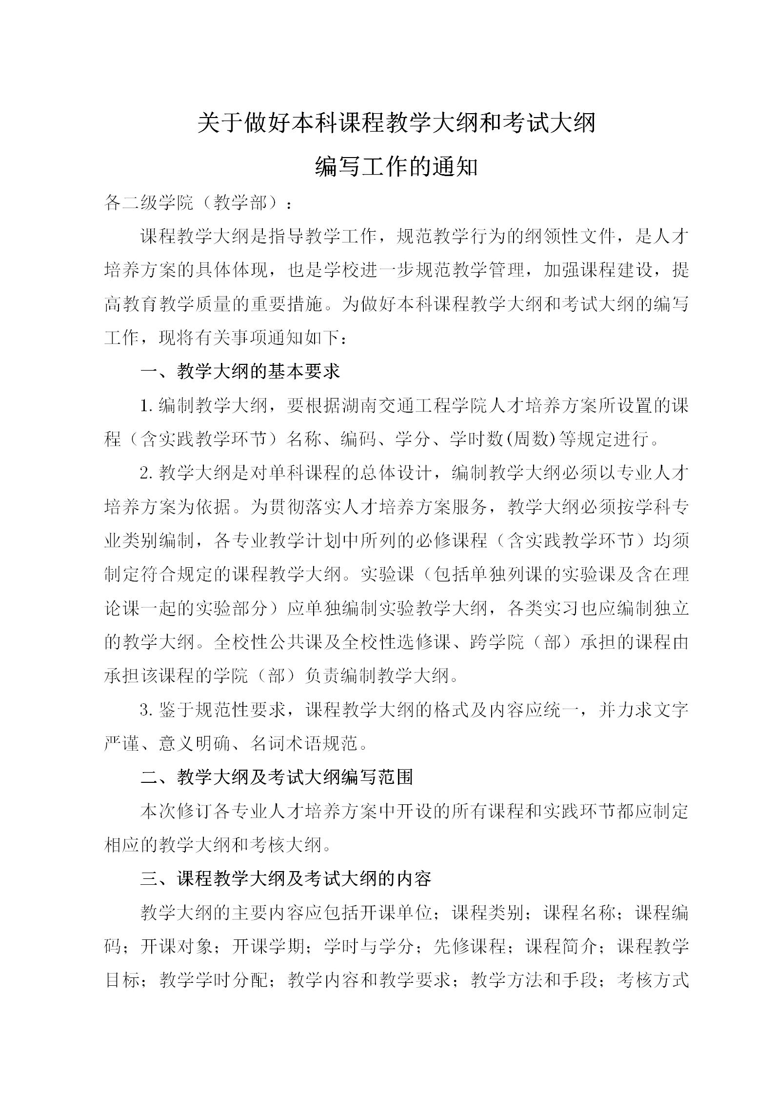 關(guān)于做好本科課程教學(xué)大綱和考試大綱編寫工作的通知
