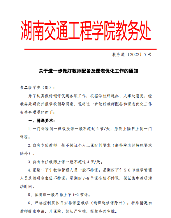 教務(wù)通〔2022〕7 號關(guān)于進(jìn)一步做好教師配備及課表優(yōu)化工作的意見.pdf