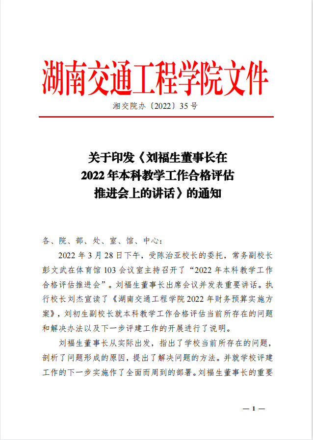 劉福生董事長在2022年本科教學(xué)工作合格評估推進會上的講話