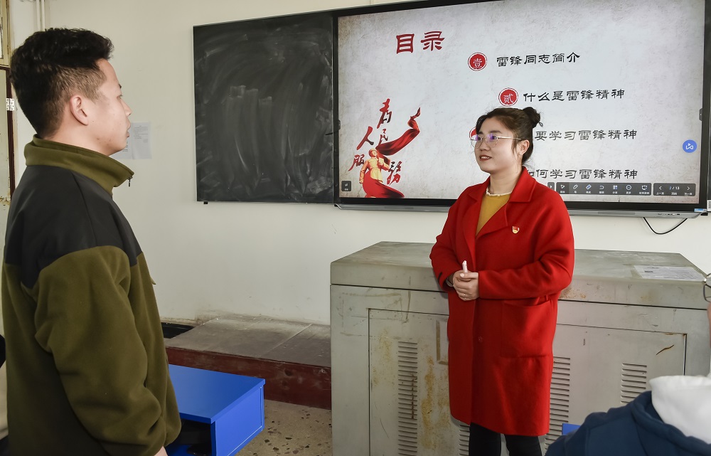 ▲張敬會(huì)在主題班會(huì)上與學(xué)生探討學(xué)習(xí)雷鋒精神的心得