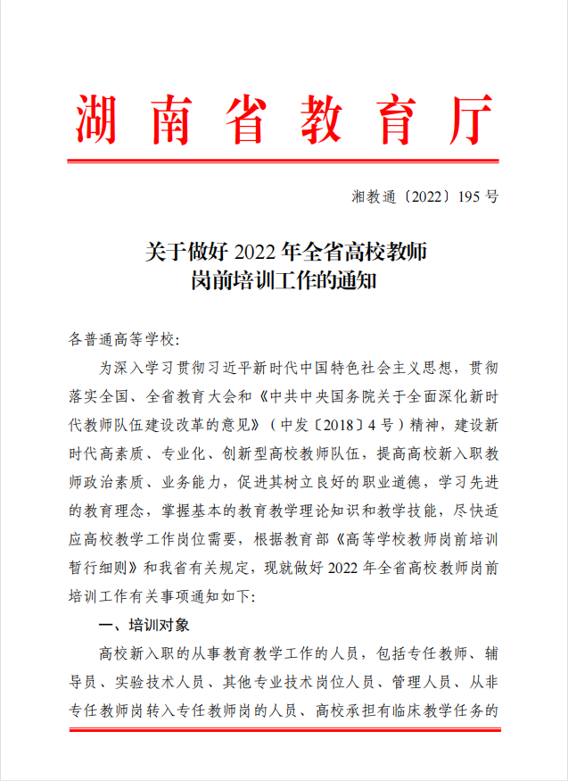 轉(zhuǎn)發(fā):關(guān)于做好2022年全省高校教師崗前培訓工作的通知