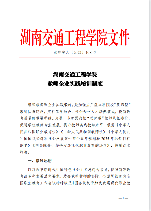 湖南交通工程學(xué)院教師企業(yè)實(shí)踐培訓(xùn)制度